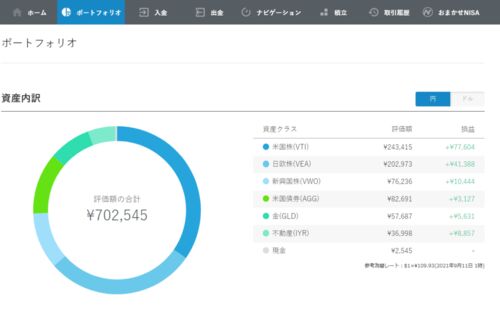 6/11(木)晴れ 風強し おはようございます。 今日は朝は天気良いですが午後からは雨降ってきそうですね。 梅雨入りなのかなー、雨嫌いだ。自転車乗れないからね・・・ 今日はウェルスナビの現状を報告しようと思います。 sakayuu18.hatenablog.com 前回の記…